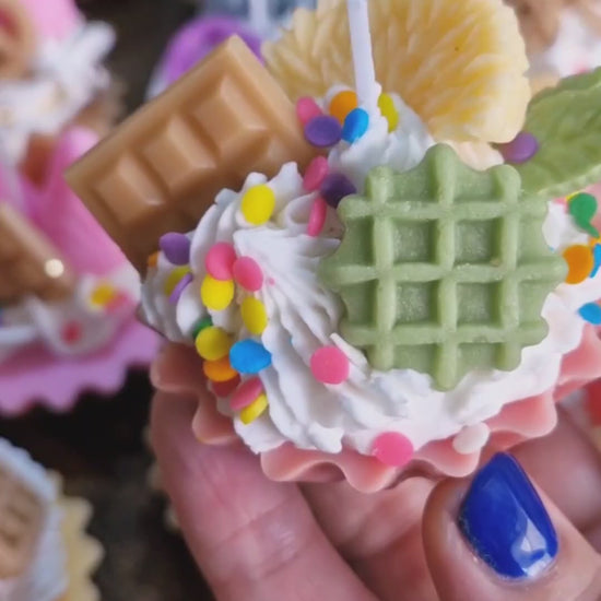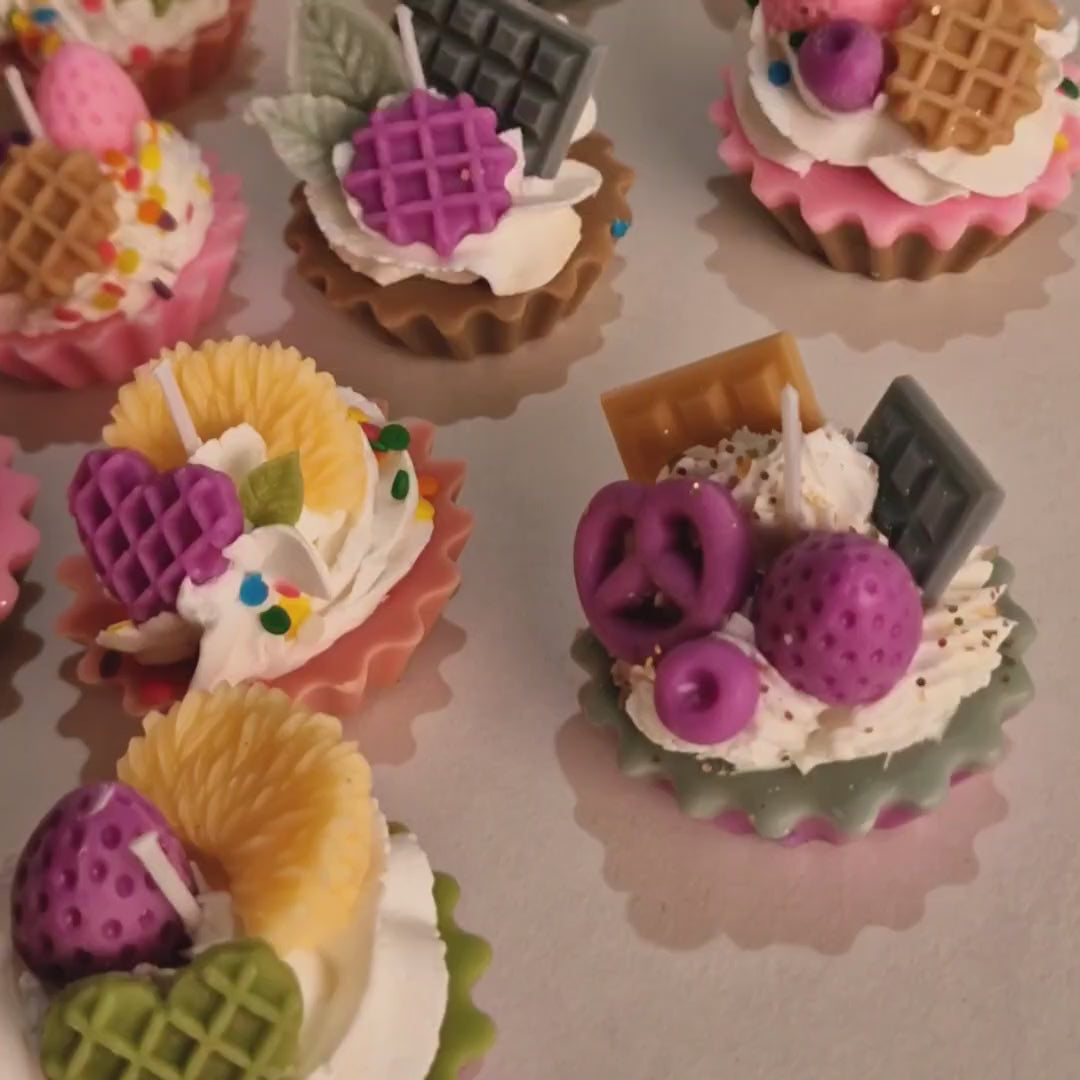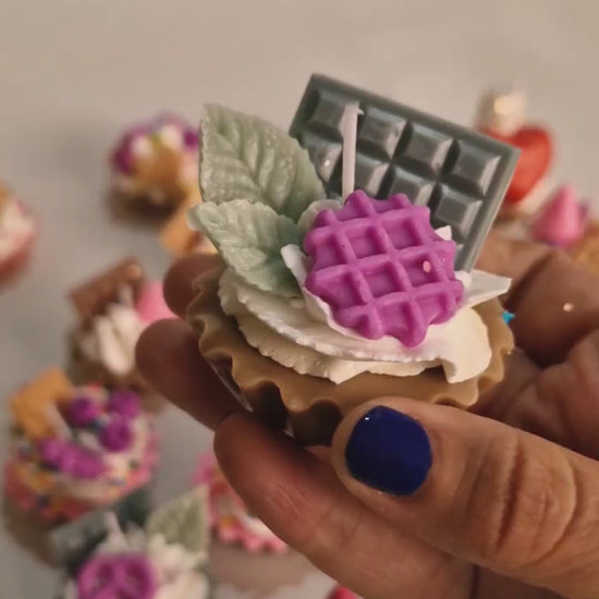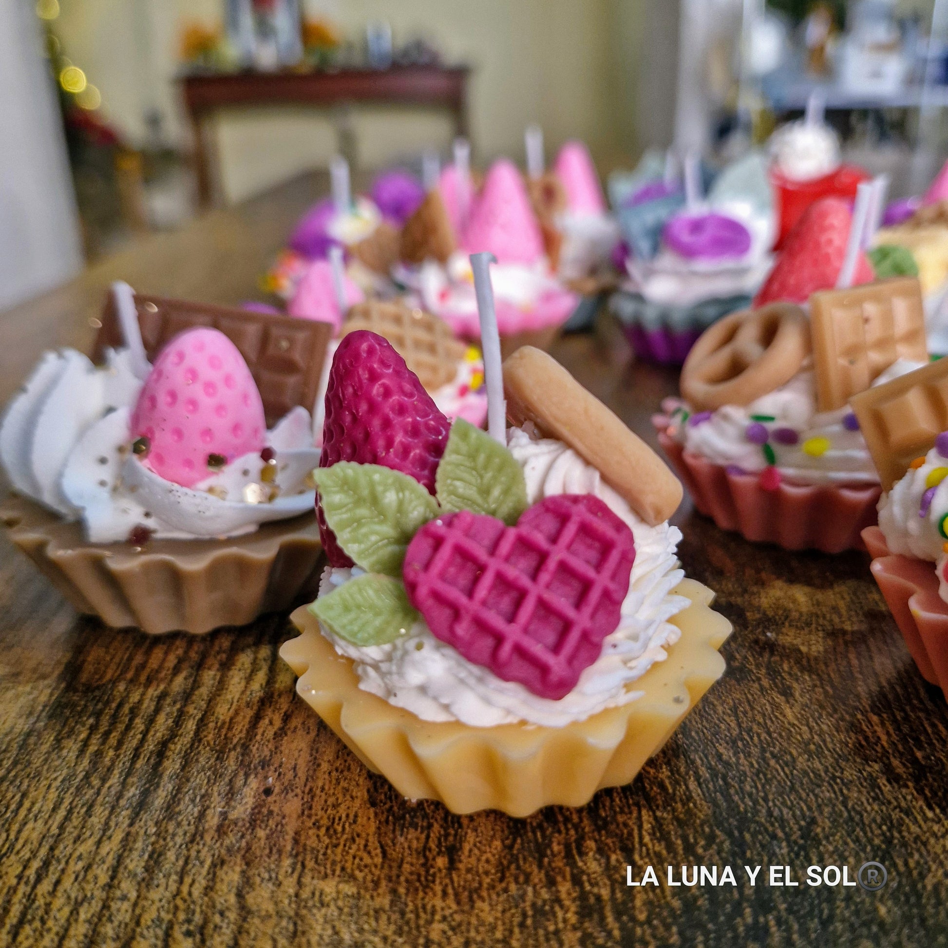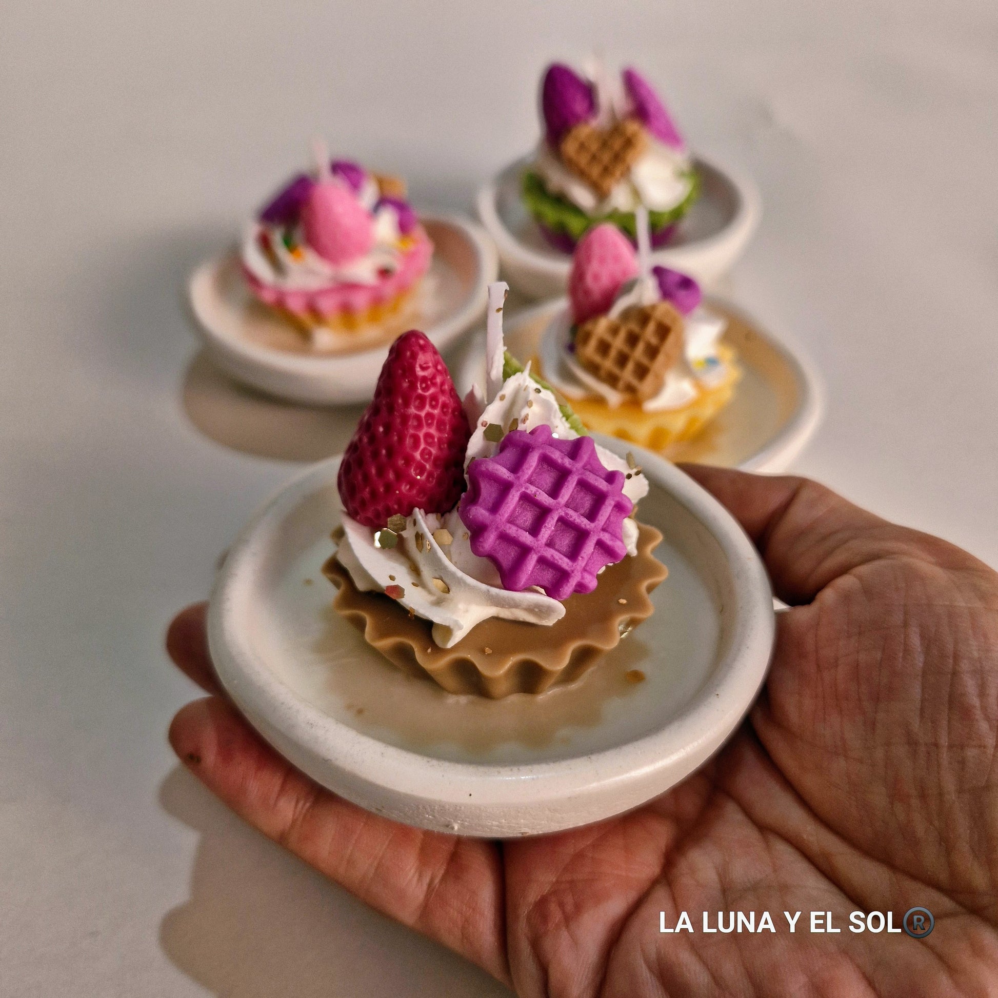 Pack 20 mini velitas diseño cupcake colores surtidos con empaque y etiqueta especial